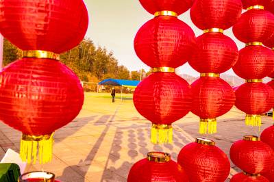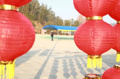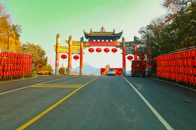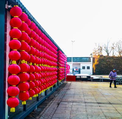 2026年1月24日,春节临近,走进湖北省英山县红山镇乌云山村文化广场,可以看到工人正高兴地在给门楼、树木、舞台挂满大大小小各种红灯笼,整个山村红旗招展,节日气氛浓郁,成为红色海洋,喜气洋洋,十分热闹,引得不少村民在一旁欣赏,欢笑声此起彼伏。