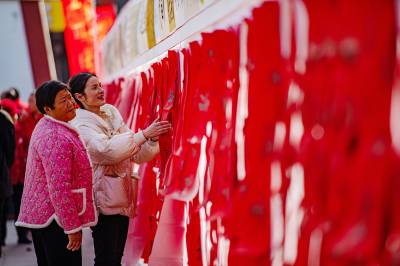 1月24日,竹山县城关镇绿松石女娲广场上墨香飘溢,年味渐浓。多位书法爱好者现场挥毫,一幅幅遒劲洒脱、寓意吉祥的春联在笔尖诞生。活动半天内共送出春联近120副、“福”字100个,为居民送上充满温情的新春礼物。 “手写的春联更有温度,是最好的新年礼物。”居民李女士拿着墨迹未干的春联,笑意洋溢。现场不少群众驻足挑选,在一片红火与墨香中,提前感受到了新春的暖意与祝福。(视界网 章磊 摄 )