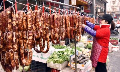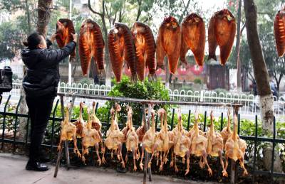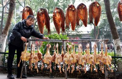 2026年1月27日,十堰市郧阳区城乡市民村民都在家门口晾晒腊肉、腊鱼、辣鸡、腊肠,年味儿浓浓,迎接大年春节的到来。