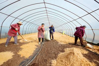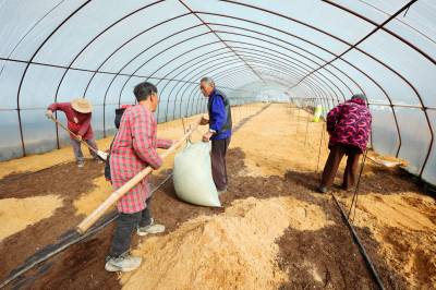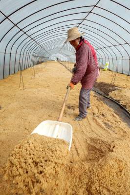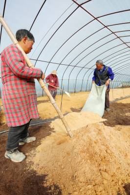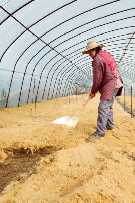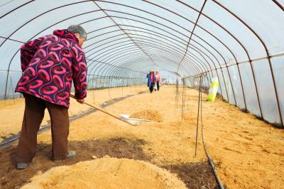 2026年1月27日,十堰市房县军店镇军马村中药材大棚基地,当地农民正在为种植的中药材白芨覆盖锯末(木屑),保障白芨种子顶土出苗,大大降低幼苗在出土过程中被“闷住”或弯曲白风险。连日来,湖北省十堰市房县抢抓春耕生产有利时机,推广种植黄精、白芨等中药材,各地组织专业技术人员深入田间地头指导药材科学种植,提升中药材产量和品质,为药材丰收打下坚实基础。