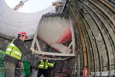 2026年1月27日,由中国水电十五局承建的竹山县潘口抽水蓄能电站阻抗式调压井离井口端12米处作业面混凝土衬砌正在紧张进行。