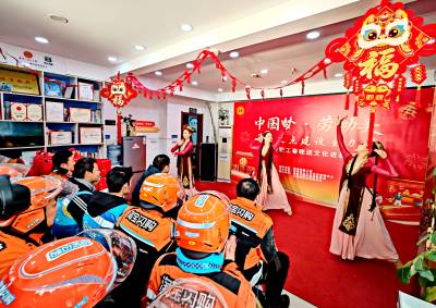 1月28日是腊月初十。当日上午,由武汉市总工会指导、武汉市工人文化宫管理中心主办、淘宝闪购红旗渠路驿站、江城骑侠志愿服务队承办的以中国梦·劳动美--勇当支点建设主力军为主题的武汉职工春晚送文化进基层活动,在淘宝闪购的江汉区汉兴街道玉兰里社区红旗渠路驿站热热闹闹举行,江城骑侠们走上了红地毯,红红火火喜迎新春马年的到年。武汉市工人文化宫管理中心,先后为他们表演了精彩的舞蹈、歌曲、新民乐、魔术、歌伴舞等文艺节目,同时对他们进行了慰问,现场赠送了装有红色骏马吉祥物、防冻手套、防冻袜、暖手开水杯等新春马年金色福字手提袋。让他们感受到了各级党和政府、省市区总工会、街道社区,在新春马年来到之陈对他们无微不至的关爱。