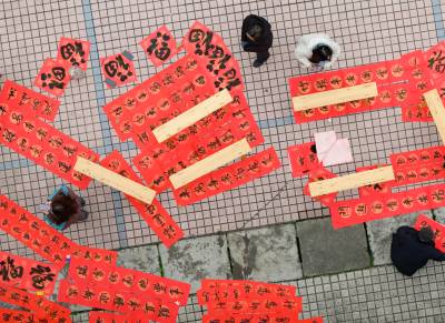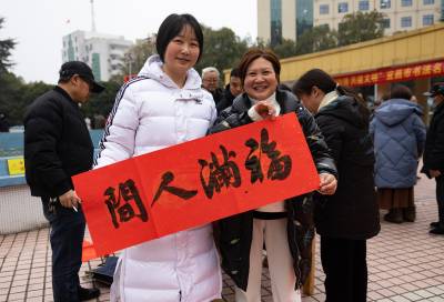 > 湖北秭归:送春联,迎新春(客户端采稿)