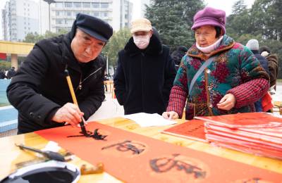 2025年1月28日,农历腊月初十,湖北省宜昌市秭归县文化馆、县书法家协会组织当地书法家开展为广大市民义务书写春联,送春联活动,喜迎马年新春。
