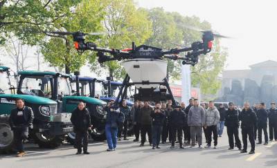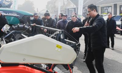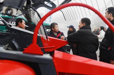 1月28日,农机手选购智能农机。当日,鄂州市农业农村局农机部门携手雷沃智慧农机生产企业在长港镇主办农机新品推广活动,助农春耕生产。此活动集中展示了前沿智能农机、农用无人机装备,吸引了来自全市百余名农机手和种粮大户前来选购。近年来,该局积极引导全市农业产业链更新升级智慧农机和智能装备,通过开展农机农具和人工智能设备展览展销,引入智能化设备、高标准技术,有效推动传统农业向“数字智能、绿色节能、科技赋能”转型升级,助力乡村全面振兴。视界网 方仲华 摄