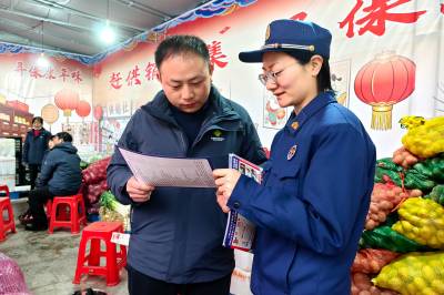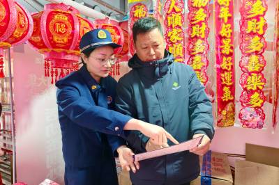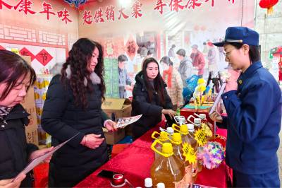 年味渐浓,在湖北省襄阳市保康县供销集团门前广场,年货大集正在火热开展。1月19日,保康县消防救援大队消防宣传人员走进大集现场,为主办方干部职工开展消防安全科普宣讲,发放消防宣传资料,为年货大集安全有序举办保驾护航。