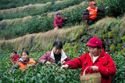 当日,三峡库区湖北省宜昌市秭归县“丝绵茶1号”早茶基地开园,当地茶农抢采茶叶嫩芽,供应春节市场。湖北秭归是“中国丝绵茶之乡”,近年来,当地茶农和华农大科研人员立足本地优势茶树品种,选育并推广“丝绵茶1号”特早生茶树新品种,助力乡村产业振兴。