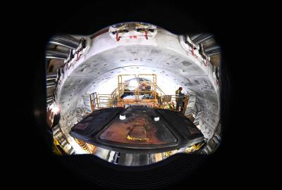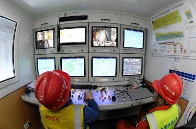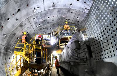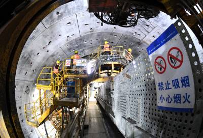 2026年1月29日,在湖北省襄阳市保康县马良镇引江补汉工程4标8号检修洞,中铁十八局工人正在现场作业。