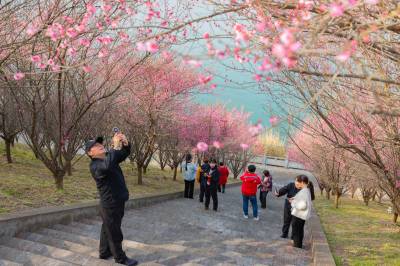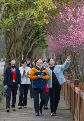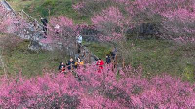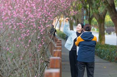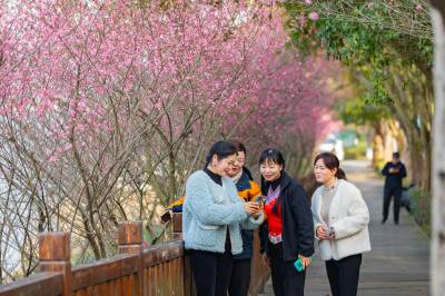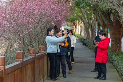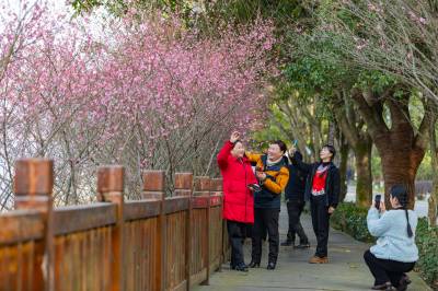 2026年2月2日,湖北省宜昌市秭归县屈原故里文化旅游区的腊梅进入盛花期,吸引游客纷纷前来打卡分享。