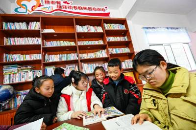 2026年2月1日,湖北省黄冈市英山县杨柳湾镇竹林铺村的村级书屋里,志愿者正带着孩子们阅读图书,这座“家门口的图书馆”成为寒假期间孩子们的精神乐园。近年来,湖北省英山县推动村级书屋提质升级,把 “书架” 变成 “课堂”,让 “藏书” 成为 “养分”,农家书屋变身乡村文化乐园,切实满足基层群众精神文化需求,为乡村振兴注入文化活力。