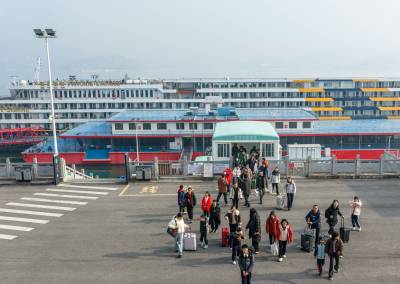 当日是春运第一天,湖北省宜昌市秭归县三峡旅游港转乘车船的游客熙熙攘攘,井然有序。据悉,当地利用三峡大坝、游轮母港和独特文化等核心资源,开发多种“三峡+”旅游产品,打造国际国内旅游目的地取得新进展。
