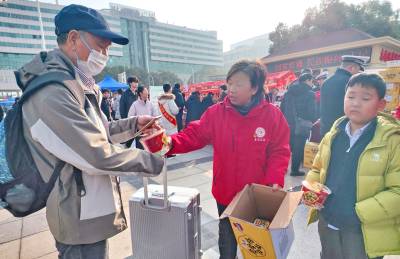 武汉:全国春运首日为参与春运旅客农民工献爱心送温暖