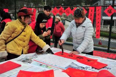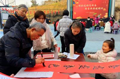 2026年2月2日,宜昌市夷陵区“银龄送福迎新春 翰墨歌舞暖绿洲”活动走进东城实验区绿洲社区,老年大学学员以免费书写春联和文艺慰问演出的形式,为社区居民送去喜迎新春的祝福,营造出欢乐祥和、文明和谐的浓厚节日氛围。活动同时通过展示老年大学的丰硕教学成果,增进了校社情感联结,丰富了居民精神文化生活,大力弘扬了中华优秀传统文化。(视界网 张国荣 摄)