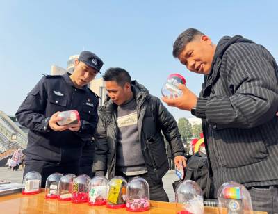 奶茶粉、曲奇饼干、跳跳糖、卡通贴纸……这些看似寻常的零食和物品,却可能是伪装性极强的新型毒品。2月5日,武汉铁路公安局襄阳公安处襄阳站派出所、刑事侦查支队联合襄阳市樊城区禁毒办、各街道办事处及禁毒志愿者在襄阳站广场共同开展禁毒宣传活动,吸引了众多旅客驻足。通过现场展示丰富多样的仿真毒品模型,特别是那些精心伪装的新型毒品实物模型,宣传人员为南来北往的旅客上了一堂生动的“防毒”公开课。
