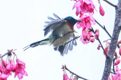湖北郧阳:鸟儿戏红梅