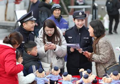 连日来,湖北省荆门市公安局东宝区分局开展“文明过年、绿色过年、平安过年”普法宣传活动。活动中,民警在商城、集市等人员密集区,采用群众喜闻乐见的方式讲解防火防盗、反诈防骗及禁毒等法律法规知识,让群众在购买年货、感受年味的同时,增强法律意识,营造良好的法治氛围。 通讯员 赵平 杜虎 摄
