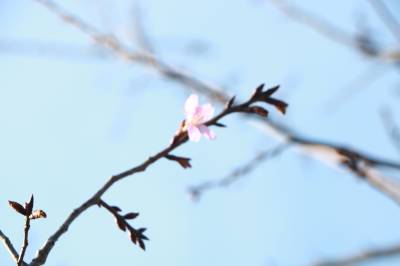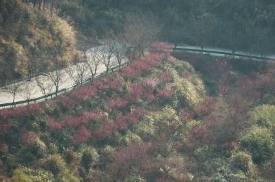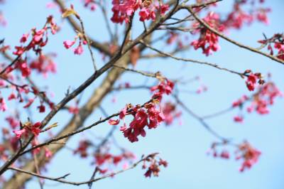 2026年2月8日,春节将至,湖北省英山县红山镇河东樱花园内早樱初绽,迷人的花朵点缀枝头,钟花樱、迎春樱等早樱在温暖的春风中含苞吐蕾,开启樱花绽放的浪漫序曲吸引不少市民前来“一饱眼福”。
