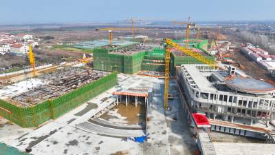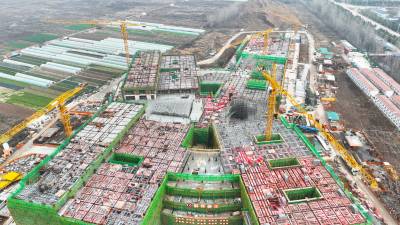 春节临近,湖北省在建规模最大的医疗综合体——长江新区医疗综合体(一期)城市更新项目建设现场依然一片繁忙。塔吊高耸,工程车辆辆往来穿梭,千余名建设者坚守一线,全力推进工程进度。