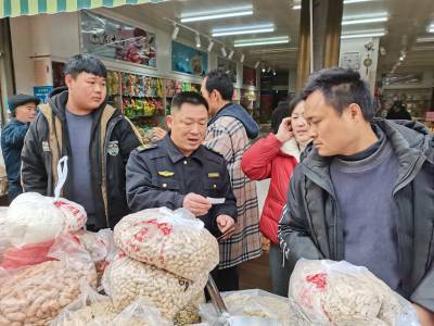 2月9日,晨光刚漫过新农街的屋檐,沿街商铺的吆喝声就裹着年味飘了出来。干果铺的木货架上,红枣码得齐整,葡萄干透着润亮,红糖瓜子装在敞口竹筐里,抓一把满是焦香。挑年货的居民挤在柜台前,有的捏起桂圆剥壳尝味,有的让老板“再添两把瓜子”。分水镇专班工作人员揣着检查本走进店,指尖在进货台账上逐行划过,偶尔停下来指着凭证上的日期,轻声和店主确认货源信息,一场节前市场“回头看”排查悄然展开。