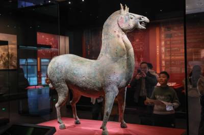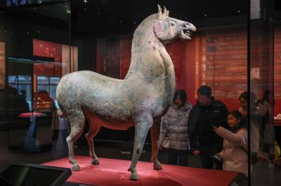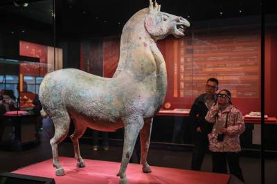 2月10日,观众在襄阳市博物馆观看被誉为“中华第一青铜马”的三国青铜马。