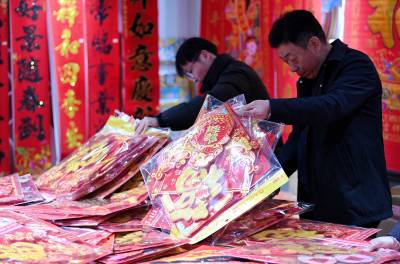 2026年2月10日,湖北省襄阳市保康县一家新春饰品超市,市民正在选购新春饰品。 当日,是农历腊月二十三小年。春节越来越近,人们忙着购置年货、打扫房屋、张灯结彩迎新春,节日喜庆氛围愈发浓厚。