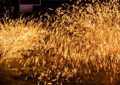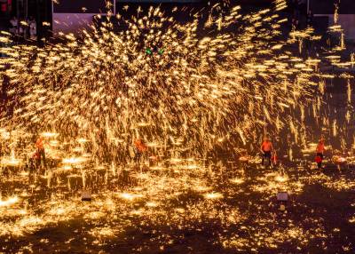 打铁花始于北宋、盛于明清,是国家级非物质文化遗产。铁花腾空、火树银花,既彰显传统匠艺的传承活力,又饱含驱邪纳吉、祈福迎新、岁岁安康的美好寓意,成为小年里最具仪式感的民俗盛景。