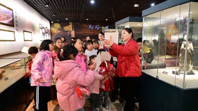 2026年2月10日是小年,在湖北省十堰市郧阳区博物馆,小学生参加“新春探古 巧手复原—解锁文物里的千年年味”迎新春活动,这是活动现场。