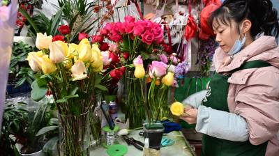 2026年2月11日,在十堰市郧阳区城关镇解放路一家鲜花店里,店员正在制作包装年宵花。 马年春节临近,各地鲜切花销售热起来。作为新春的“氛围担当”之一,年宵花深受人们的喜爱。春节将至,年味渐浓,各地不同品种、五彩斑斓的年宵花已大量上市,满足消费者需求。视界网王涛摄
