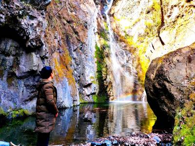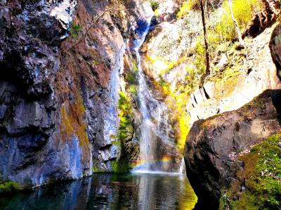 晴日里,阳光穿透水雾,于飞瀑间织就一道七彩长虹,红橙黄绿青蓝紫次第晕开,与青山绿水相映成趣,宛若仙境。溪床经千年水流浸润,泛着斑斓色泽,清泉石上流,叮咚作响,似天然乐章。四周林木葱郁,负氧离子充盈,是天然氧吧;风过林梢,竹影婆娑,更添清幽意境。