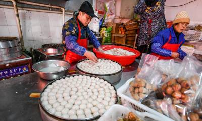 为了应对节前销售高峰,满足广大消费者的购买需求。他聘请了几名有着丰富鱼丸制作经验的工人帮忙。每天早上2--3点多钟吴师傅和工人就忙活起来,刮鱼鳞、起鱼红、绞肉、搅拌、挤丸、蒸煮等一道道工序经过分工协作,挤好的鱼丸紧密的排列在笼屉上,再经过40分钟的大火蒸煮,一笼笼热气腾腾、晶莹圆润、弹性十足的鱼园便出锅了,家乡的年味香飘全国。