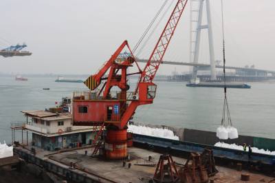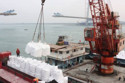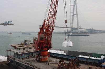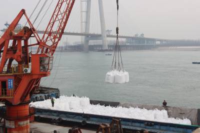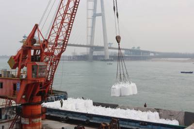 2月12日,位于枝江市的宜昌众港物流有限公司正在为江苏客户装卸复合肥。新春在即,各地抢抓时机,储运肥料,为春耕生产做好准备工作。视界网刘卫东摄