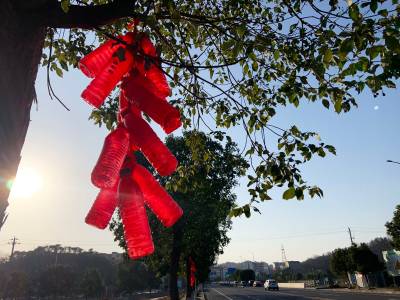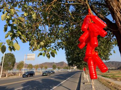 马年春节来临前夕,丹江口市丁家营镇环保志愿者,将4000余只废旧饮料瓶回收、清洗、刷漆、编织,制成近400串环保红鞭炮,悬挂在该镇约4公里主干道树上。这场“变废为宝”行动,为南水北调中线核心水源地添了新春“红”与生态“绿”,成为网红打卡点,刷屏朋友圈,收获市民广泛好评。
