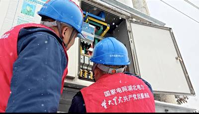 湖北荆门:坚守岗位 雪后巡检