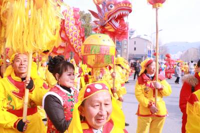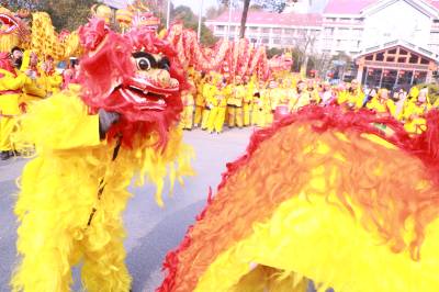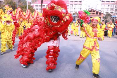2026年2月18日,农历大年初二,古韵绽芳华,龙狮贺新春。在湖北省英山县温泉城区主要街道,该县组织龙狮队伍以及民俗表演走街串巷,锣鼓喧天,把福气送到千家万户。
