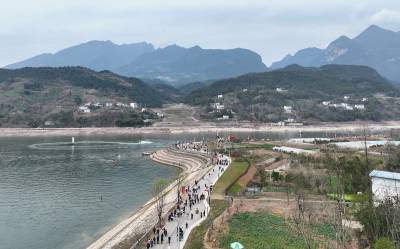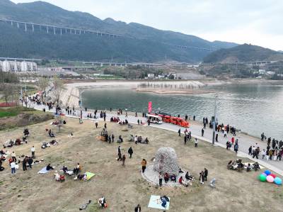 上午9时许,巴东县溪丘湾乡平阳坝村神农湖畔迎来一波波自驾游客,停车场一位难求。在环湖大道上,小吃店、水果摊位、新年饰品、空中观光、陆地小火车和观光车、水中快艇或荡舟或嬉戏、放风筝、自行车骑行、健步走、草坪娱乐、日光浴等等让人目不接暇,人气感直接拉满,每天游客接待量超5000人。