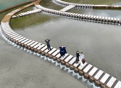 2月18日,正月初二,暖阳如春。在湖心,摆停着几只柏木帆船,岸上有新春拍照打卡点,一排排高大的柳树枝条顺风摇曳,仿佛在向人们微笑招手。