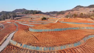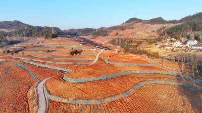 2026年2月20日,湖北省十堰市房县门古寺镇叶家河水土治理基地,水平梯田环绕山腰,固水保土。近年来,房县以小流域水土流失治理为单元,实施“山、水、林、田、路”综合治理,,通过工程措施、生物措施和耕作措施治理,将“跑水、跑土、跑肥”的“三跑地”治理成“保土、保肥、保水”的“三保”水平梯田,让昔日的“望天田”变身旱涝保收的“饭碗田”,增强生态系统水土保持功能,提升土地产出效率。目前,全县累计完成治理水土流失面积1449平方公里,水保工程年实现拦截泥沙61.3万吨,保水2683万立方米。