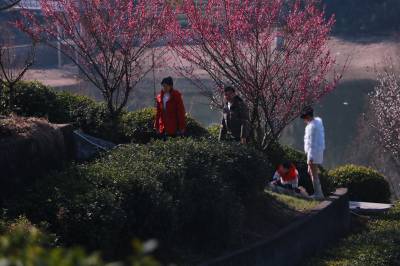2026年2月21日,春风和煦,春阳高照。在湖北省英山县红山镇乌云山村乌云山茶叶公园,梅花带香,桃花灼灼,茶园青翠,游人如织,春光无限好。