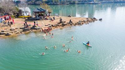 嘉鱼冬泳爱好者拥抱碧水过大年
