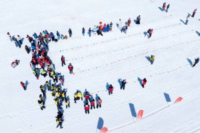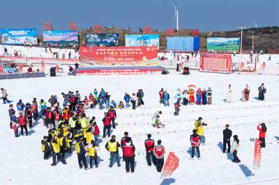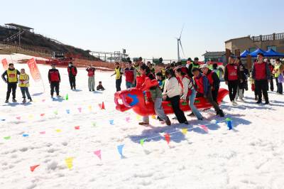 2026年2月22日,在宜昌市夷陵区百里荒滑雪场,游客参加“体育过大年”主题活动中的两人三腿跑趣味运动比赛。2026湖北省“体育过大年”主题活动于2月21日至23日在全省14个会场同步举行,设置襄阳、十堰、孝感、随州4个主会场和宣恩县、大冶市、红安县、夷陵区、京山市、江夏区、嘉鱼县、松滋市、鄂城区、仙桃市等10个分会场,通过省市县三级联动,将体育的触角延伸至基层末梢,打造一场全民参与、全域覆盖、全龄共享的体育新春盛会。“体育过大年”主题活动不仅是新春佳节的体育狂欢,更是湖北推动全民健身与全民健康深度融合、以体育赋能美好生活的生动实践。(视界网 张国荣 王垚琳 摄)