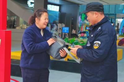 据了解,当晚值班的保安田应列、严焜、向智在巡逻时,发现了遗落在文创城角落的背包,考虑到失主的焦急心情,他们立即将背包上交至物业部,并通过包内信息多方联系失主。2月22日(大年初七),徐艳艳特意带着一面印有“雷锋精神 拾金不昧”的锦旗来到甘露山文创城,亲手送到三位保安手中,以表达自己的感激之情。