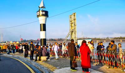 2026年2月21日是大年初五,宜昌市长江客运码头上游客己排起长队有序登船,江面上多艘游轮上下安全通过3号船闸。游客在春节小长假组团乘游轮沿长江游旅,打卡拍照葛州坝雄姿、长江三峡美景、三峡大坝雄姿。上可直达重庆,下可达上海,让游客领略长江大自然美景丰彩。