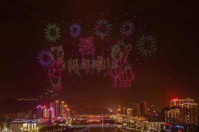 2月23日晚,竹山县城关镇桃花源街区流光溢彩、人头攒动。当晚9时50分时许,2000架无人机腾空而起,以夜空为幕、光影为笔,上演了一场美轮美奂的科技视觉奇观。