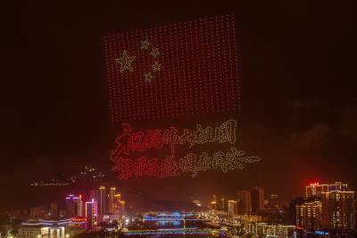 当“祝福伟大祖国繁荣昌盛国泰民安”的巨幅字样闪耀夜空时,现场观众纷纷举起手机,记录下这震撼人心的一刻。整场表演将科技与艺术完美融合,为市民游客献上了一场精彩绝伦的视觉盛宴。(视界网 章磊 摄)