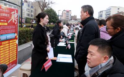 2月24日,安陆市太白广场,该市湖北金禄科技、中科铜箔、永祥农机、神丹食品、午时药业、爱仕达电器等逾百家企业在现场摆设擂台、设置展位,招聘职位涵盖制造加工、食品包装、行政文职、技术技工、商贸服务、餐饮文旅、普工运营等多个领域,从零基础普工到专业技术岗,从基础文职到管理岗,用工需求超过万名。