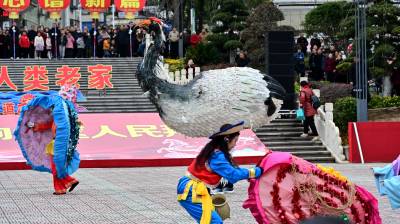 马年正月初八,十堰市郧阳区迎新春民俗花灯秧歌集中大拜年活动在文化广场举行,丰富多彩的花灯、秧歌轮番上阵,向市民恭贺马年春节。视界网王涛摄