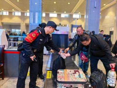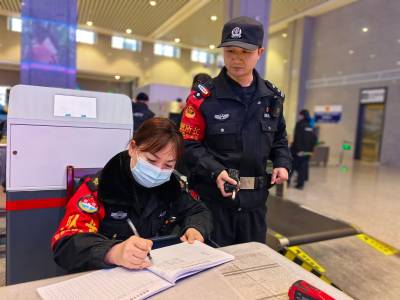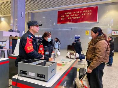 春运返程期间,荆门站派出所严格落实安检查危工作规范,加大对进站口、安检通道等重点部位的巡查督导力度,督导安检员从严从细开展人身、行李物品全覆盖检查,严防危险品、违禁品进站上车,切实把牢进站“第一道防线”。
