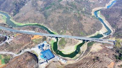 2026年2月24日,十堰市房县红塔镇马栏村,高速公路、高标准公路穿越秦巴山脉,“四好农村路”联通茶叶、中药材、养殖基地和农业产业观光园。