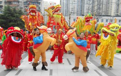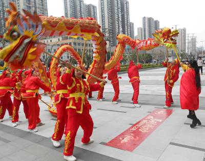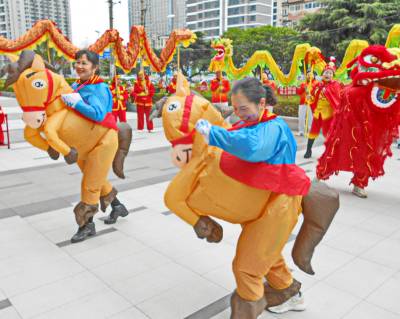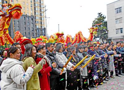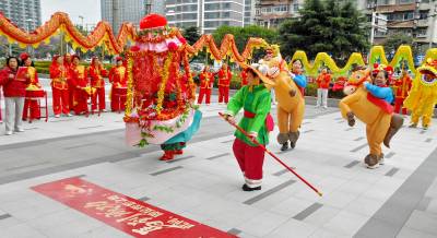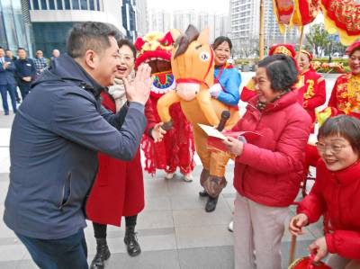 > 武汉市江汉区汉兴街道江汉里社区到辖区单位拜马年鼓马劲贺新年