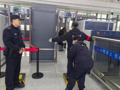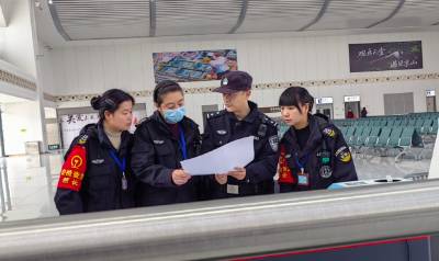 襄阳铁路公安处天门站派出所严格落实春运期间各项工作措施,图为民警开展安检督导工作。